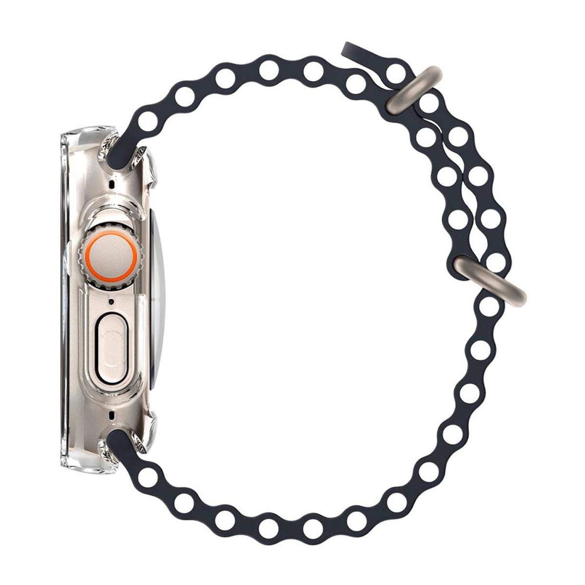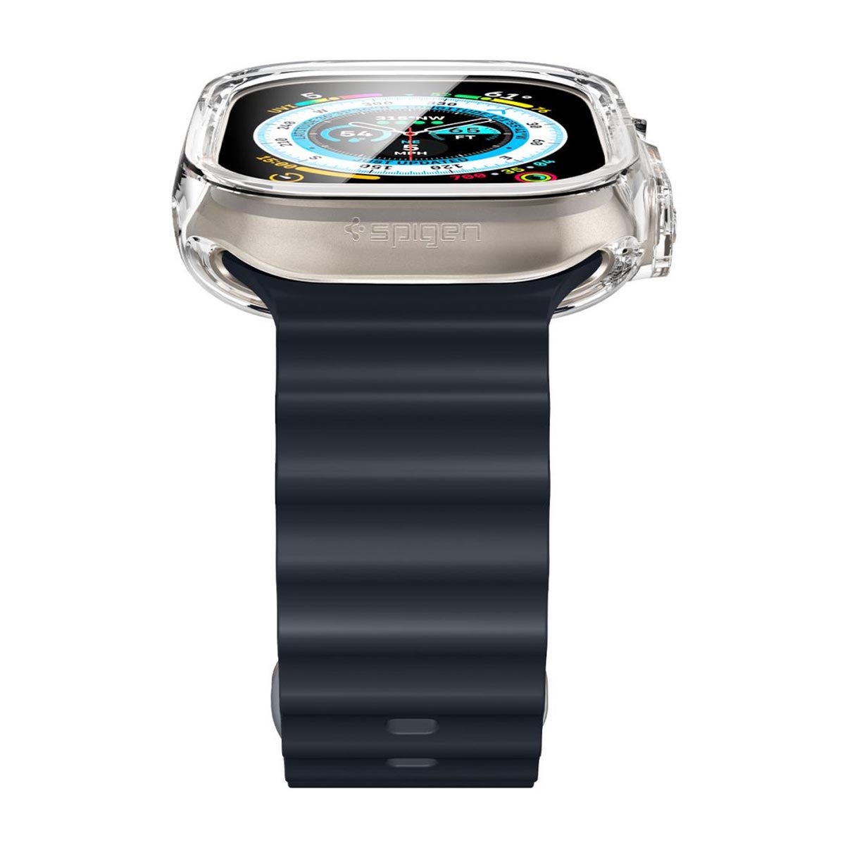 Alkuperäinen Spigen Ultra Hybrid Apple Watch Ultra suojakuori parantaa pitoa. Se on valmistettu joustavammasta TPU:sta sekä kestävästä PC-materiaalista.