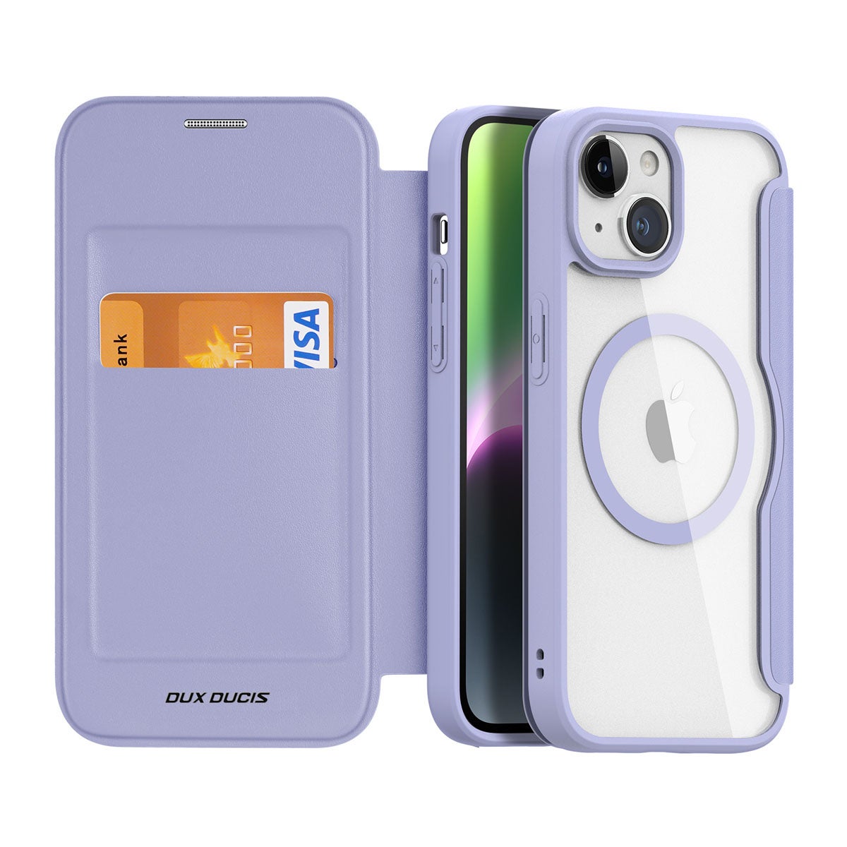 Korkealaatuinen Dux Ducis Skin-X Pro iPhone 15 MagSafe-lompakkokotelo, Violetti on tyylikäs valinta puhelimen suojaukseen. Taustastaan läpikuultava kotelo päästää laitteen oman muotoilun hienosti esille eikä kellastu ajan kuluessa. Kotelossa on vahva magneetti, joten voit käyttää kuorta yhdessä kaikkien MagSafe-lisätarvikkeiden kanssa. Kotelo istuu laitteeseesi saumattomasti eikä millään tavalla häiritse laitteen käyttöä.