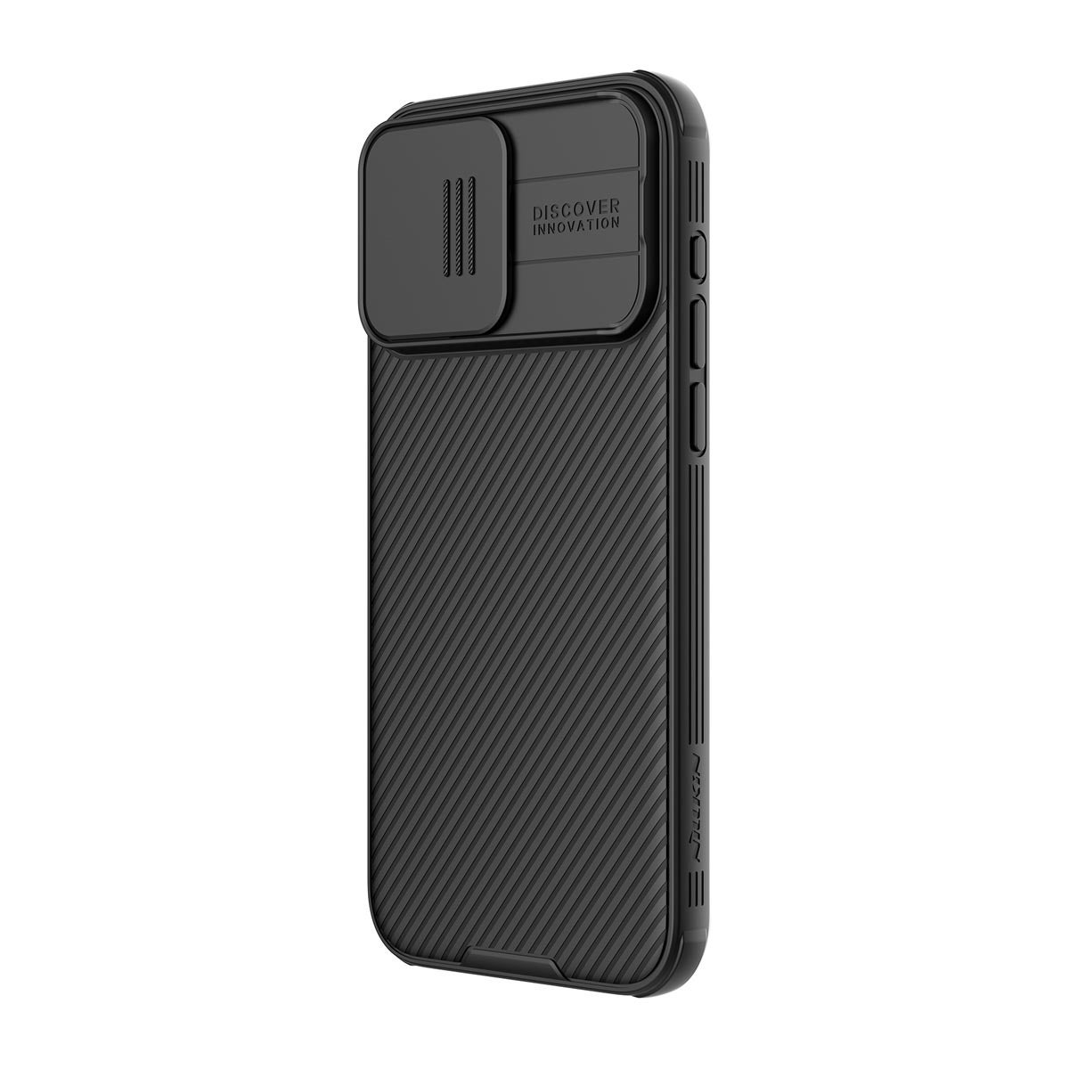 Musta Nillkin iPhone 15 Pro CamShield Pro Case -suojakuori on täsmällisen muotoilun tulos. Kaikki portit ja kytkimet ovat normaalisti käytettävissä kuoren kanssa. Takakameraasi ympäröi 0,2 millimetrin korkuinen kehys, jossa olevaa kamerasuojaa voi liikuttaa edestakaisin. Pääset hetkessä käsiksi kameraan, kun haluat ottaa kuvia. Nillkinin modernia teknologiaa hyödyntävät kuoret tuntuvat hyvältä käsissä ja lisäävät pitoa muuten liukkaasta puhelimestasi. Materiaali hylkii veden lisäksi myös öljyä ja sormenjälkiä. Näin ollen taustakuori ei likaannu yhtä nopeasti kuin paljas iPhone 15 Pro -puhelin ja kuoren pinta on tarvittaessa helposti puhdistettavissa.