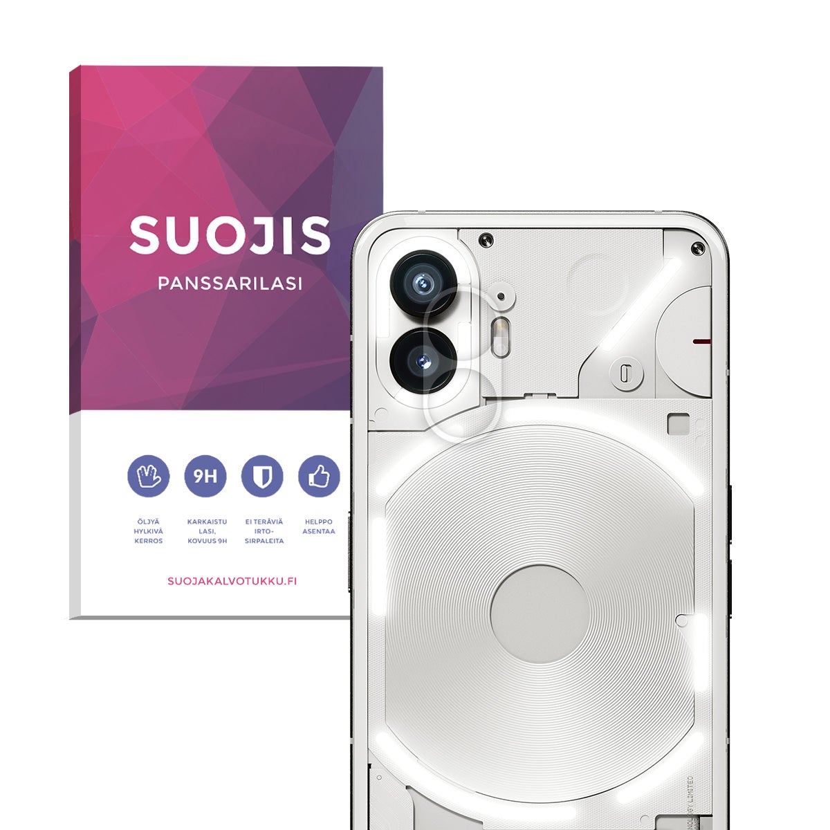 Nothing Phone (2) Suojis®-panssarilasi on tehokas suoja, joka asettuu puhelimesi takaosan kameralinssien suojaksi. Materiaali on aitoa japanilaista AGC-lasia. Tämä laadukas 9H-vahvuinen ja vain 0,33 mm:n paksuinen panssarilasi on helppo kiinnittää, poistaa ja pitää siistinä.