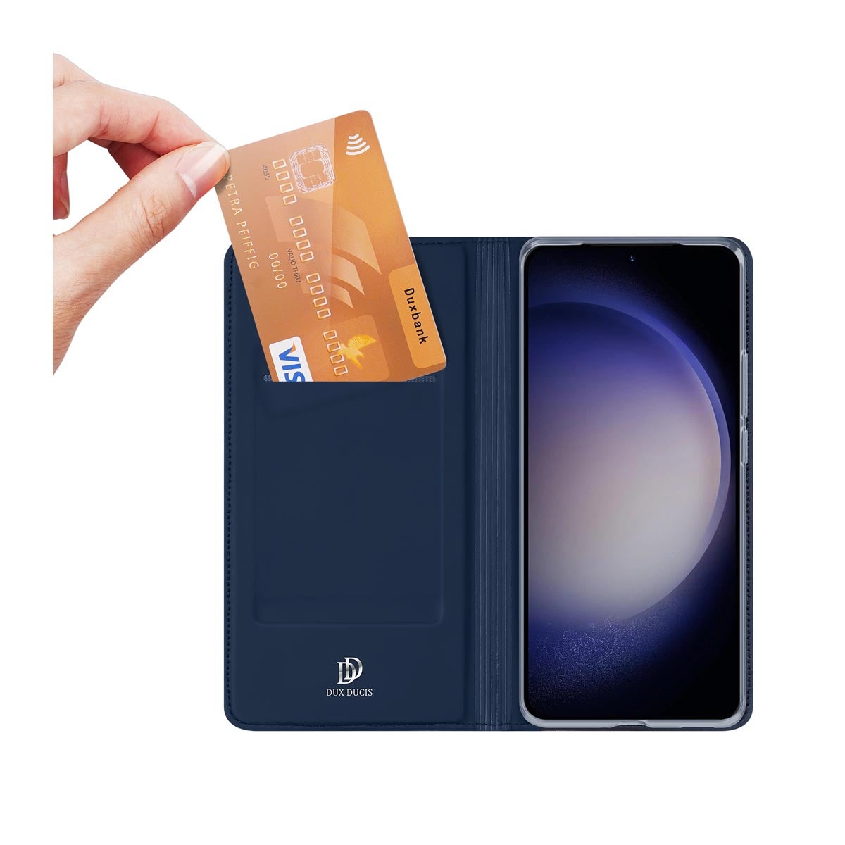 Dux Ducis Skin Pro keinonahkaiset kuoret Galaxy S24 Plus 5G -puhelimelle luottokorttipaikalla kuvien mukaisissa väreissä.